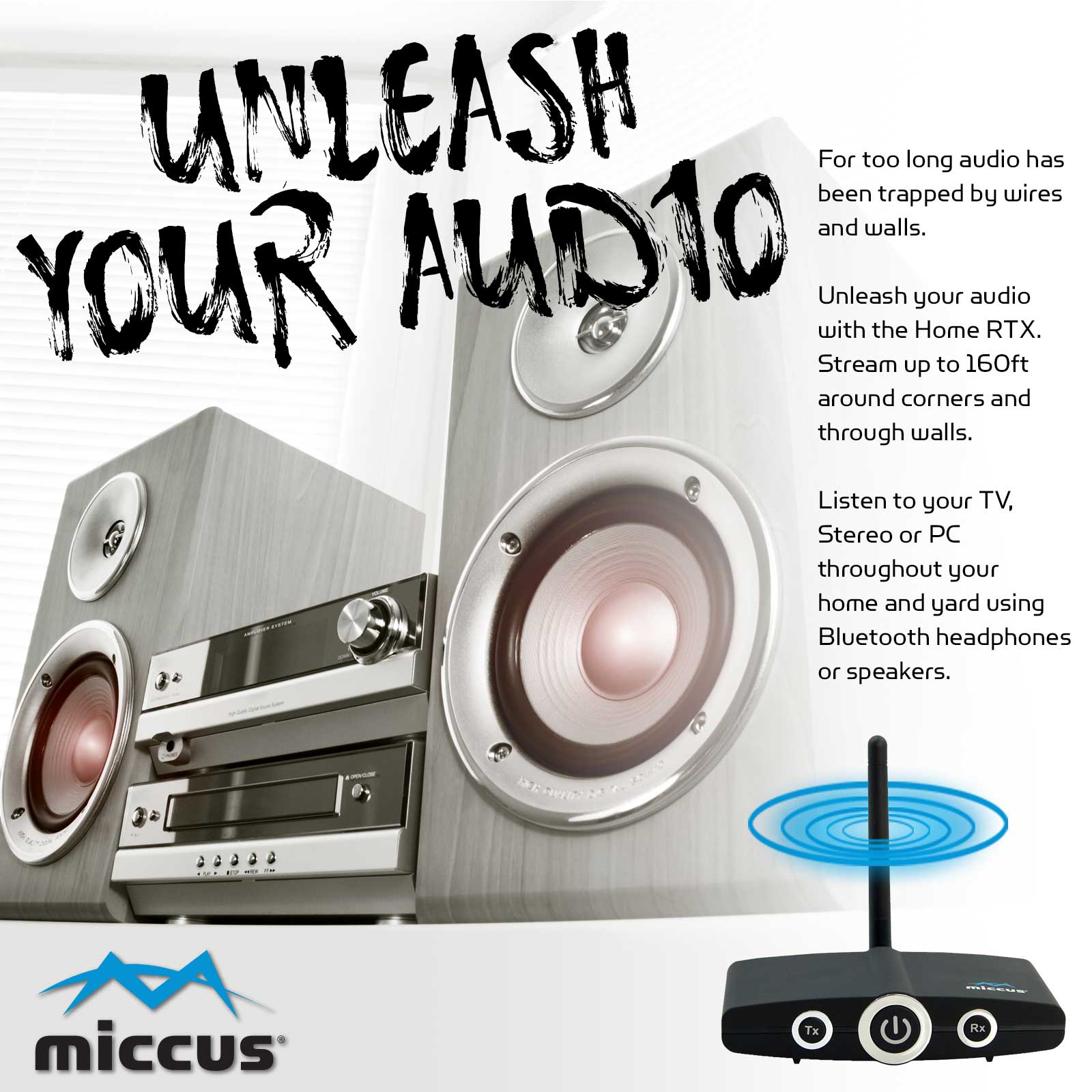Miccus Home Rtx 2 0 The Best Long Range Bluetooth Transmitter Receiver For Tv Or Stereos